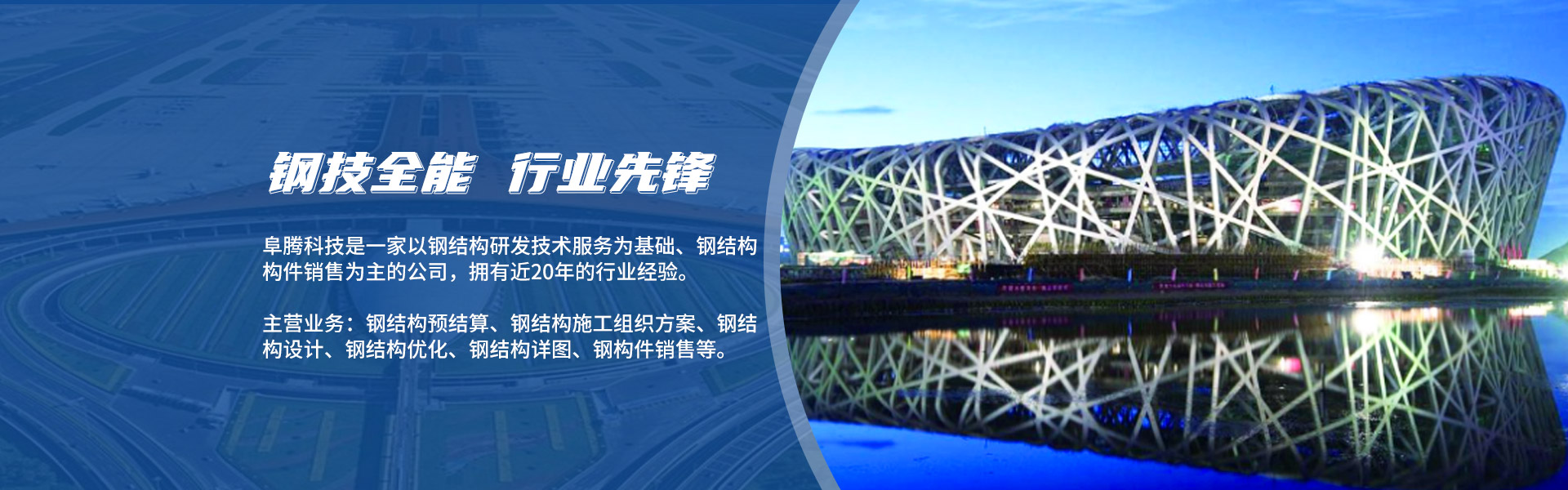 ABOUT US北京阜騰科技發(fā)展有限公司坐落于北京●順義,是一家以鋼結構研發(fā)技術服務為基礎、鋼結構構件銷售為主的公司,擁有近20年的行業(yè)經(jīng)歷。